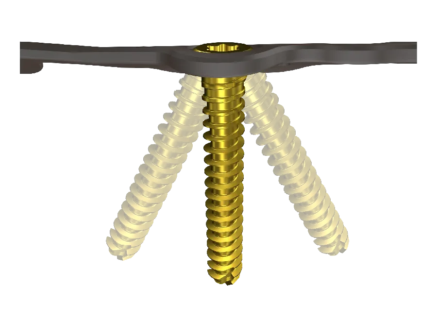 ALPHALOKTM features low-profile 1.3mm, Titanium Alloy Ti6AI4V plates that accept 2.7mm and 3.5mm polyaxial locking screws that can be angled ±15° for a total range of 30°.